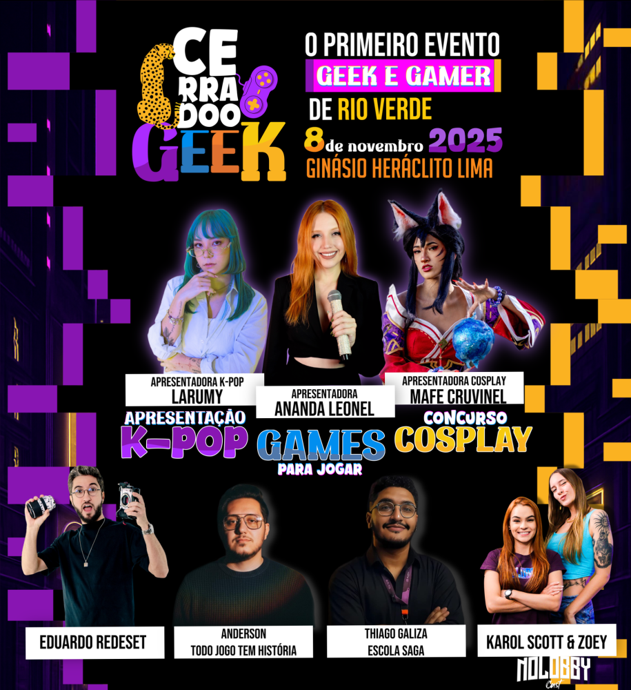“O Cerrado Geek nasce da vontade de criar um espaço de pertencimento e celebração da criatividade aqui em Rio Verde. Queremos mostrar que o interior também respira cultura pop, inovação e diversidade”, destaca Mafe Cruvinel, idealizadora do evento.