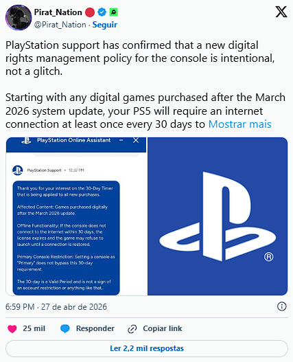 Até o momento, a Sony não confirmou se essa política também será aplicada a mídias físicas ou a outras plataformas dentro do ecossistema PlayStation.