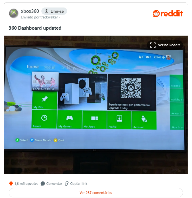 Um dos comentários mais notáveis foi sobre as miniaturas dos jogos, que agora estariam com proporções mais adequadas — antes esticadas, agora ajustadas corretamente. Além disso, a interface passou a exibir uma propaganda do Xbox Series X|S, incentivando jogadores veteranos a migrar para a nova geração.